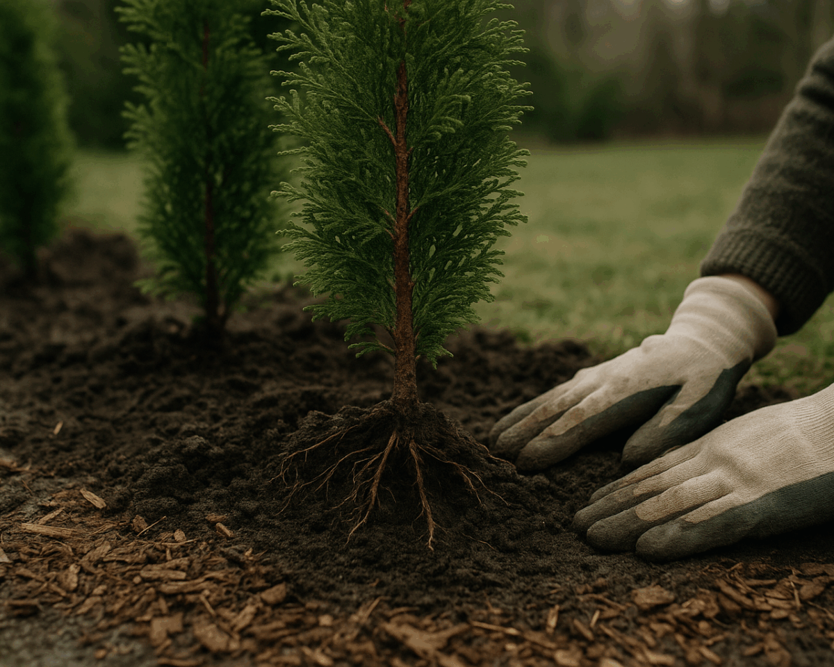 Genom att låta området runt rötterna vara orört under etableringsfasen ger du dina thujor bästa möjliga start. Ett starkt och välutvecklat rotsystem är grunden för en häck som håller sig frisk och frodig i många år framöver.