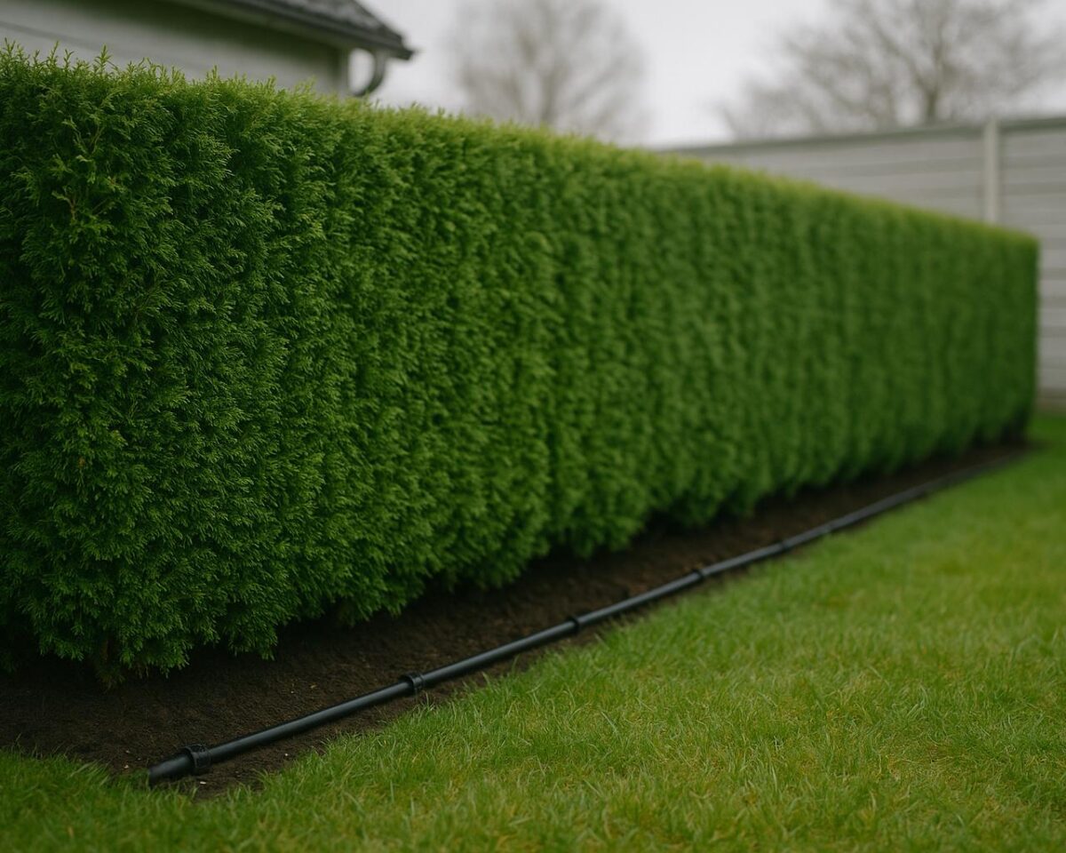 För tujahäckar är droppbevattning och sippslang toppval. De ger vatten långsamt och direkt till rötterna, bra för tuja.