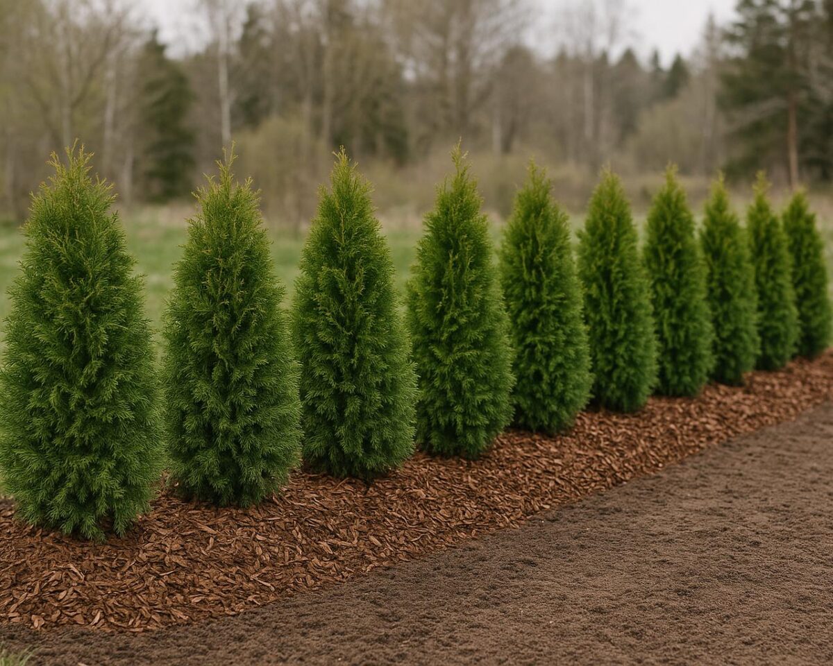 Det finns flera bra alternativ för marktäckning runt etablerade tujor, och varje material har sina egna fördelar. Flisad bark och tallgranulat är populära val eftersom de både minskar ogrästillväxt och hjälper marken att behålla fukt.