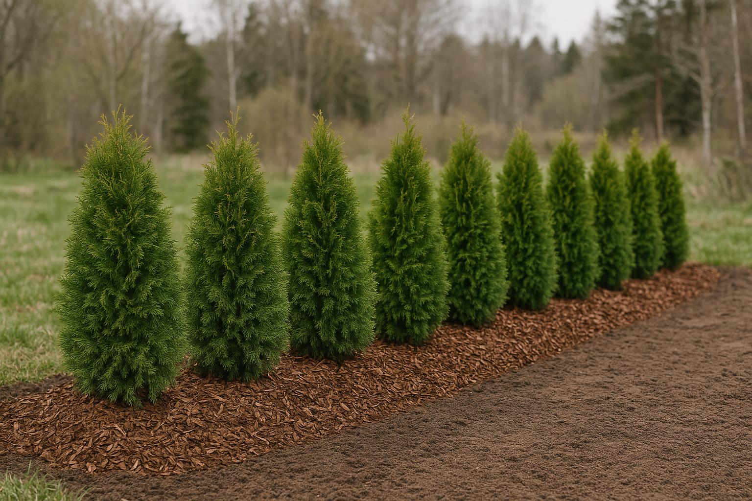 Under det första året efter att du planterat dina tujor är det bäst att undvika att använda marktäckning som bark eller annat material runt plantorna. Även om det kan verka praktiskt, kan det faktiskt orsaka fler problem än det löser under denna känsliga etableringsperiod.