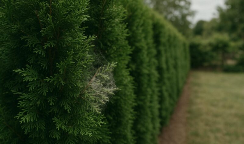 Praktiska, kemikaliefria råd för att upptäcka, förebygga och bekämpa spinnkvalster på tujahäckar samt stärka häcken efter angrepp.